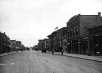 PC-2205 Looking southeast down Main Ave. Visible buildings and businesses include: First National Bank, Rogerson Hotel, Twin Falls Bank and Trust, Hotel Perrine, Twin Falls Grocery, Five and Ten Cent Store, Varney the Candyman, the Art Store, and Independent Meat Market