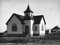PC-2208 Wood frame church; other houses and outbuildings are visible in the background.