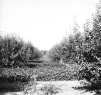 PC-2177 Long view down a row of trees or bushes in an orchard