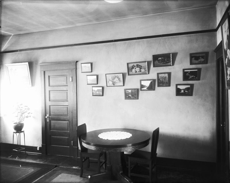 Interior of Bisbee Studio; room with a table and chairs beneath photos.