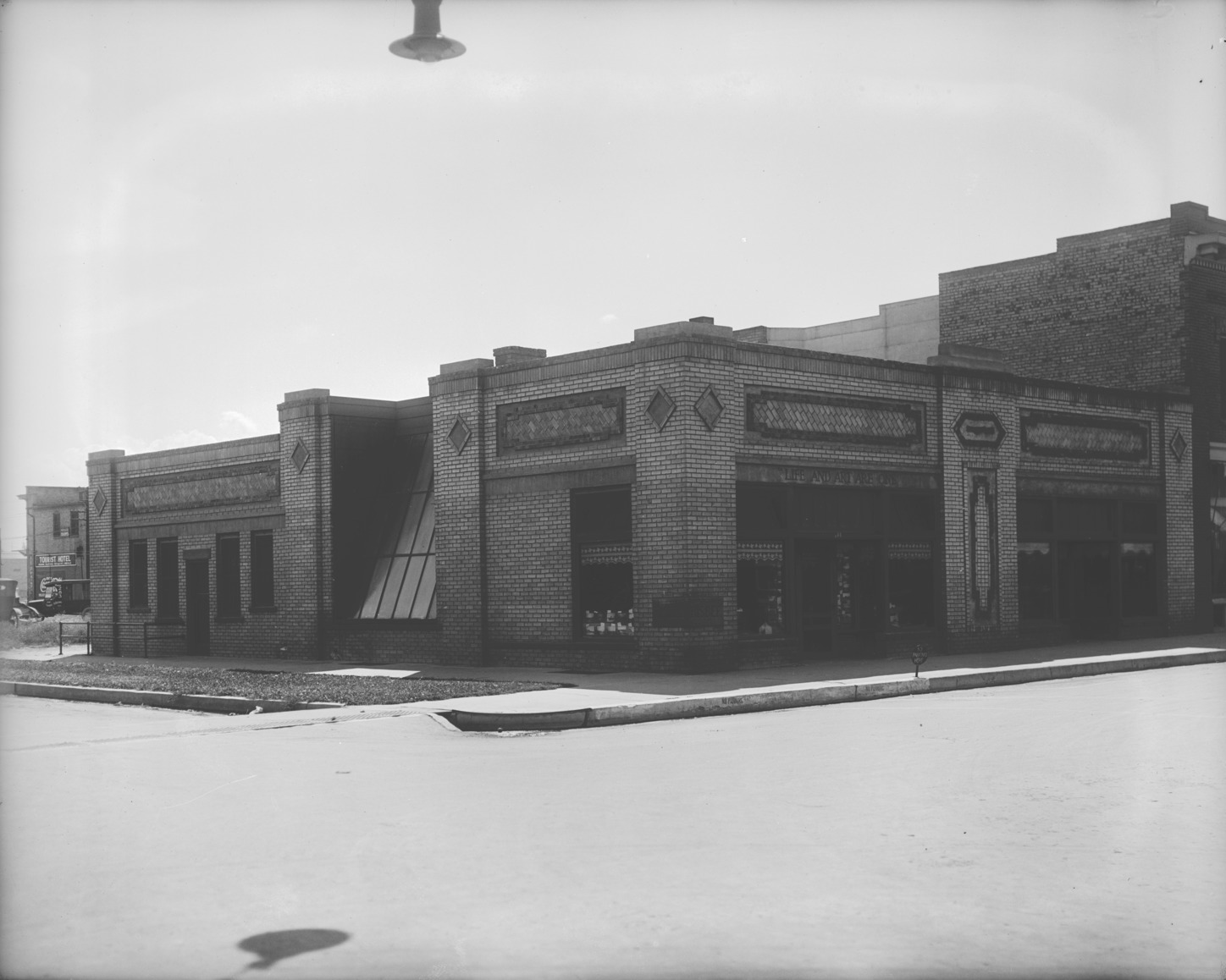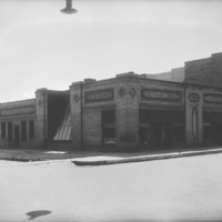 - Exterior view of the Bisbee Studio with addition, looking south at the corner of 2nd Ave East and 2nd St East (now Hansen St E.). Sign for Tourist Hotel on alley entrance of building in background.