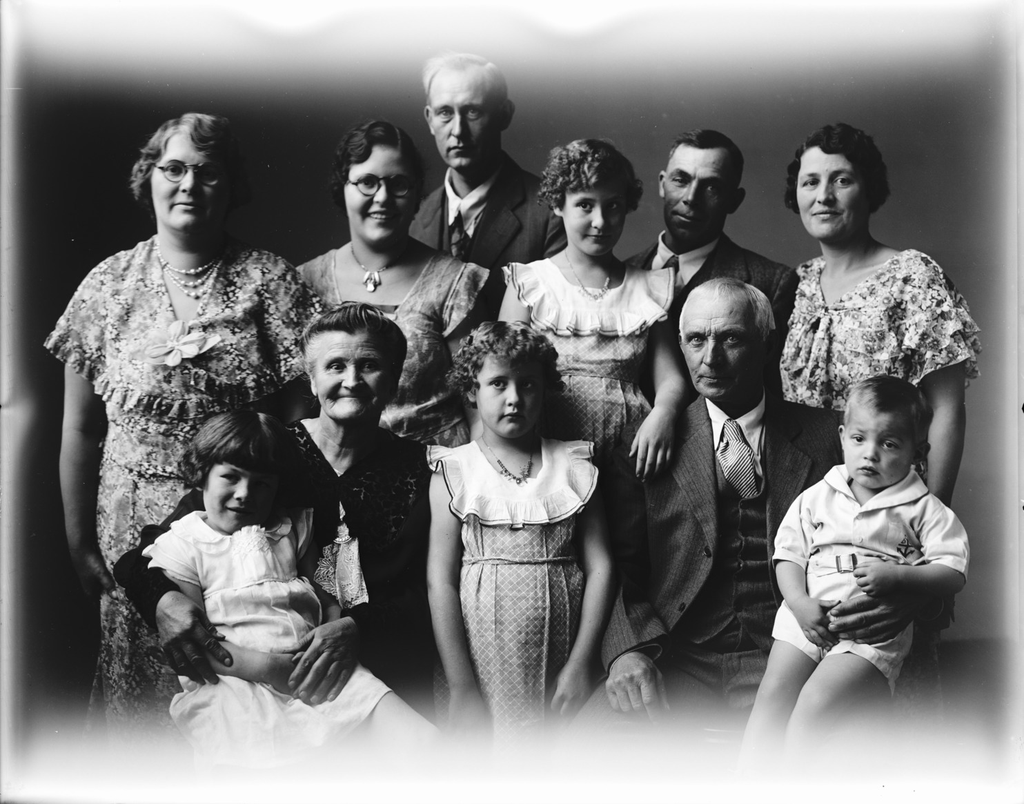 - Portrait of a family of eleven people (three men, four women, three girls, and one boy).