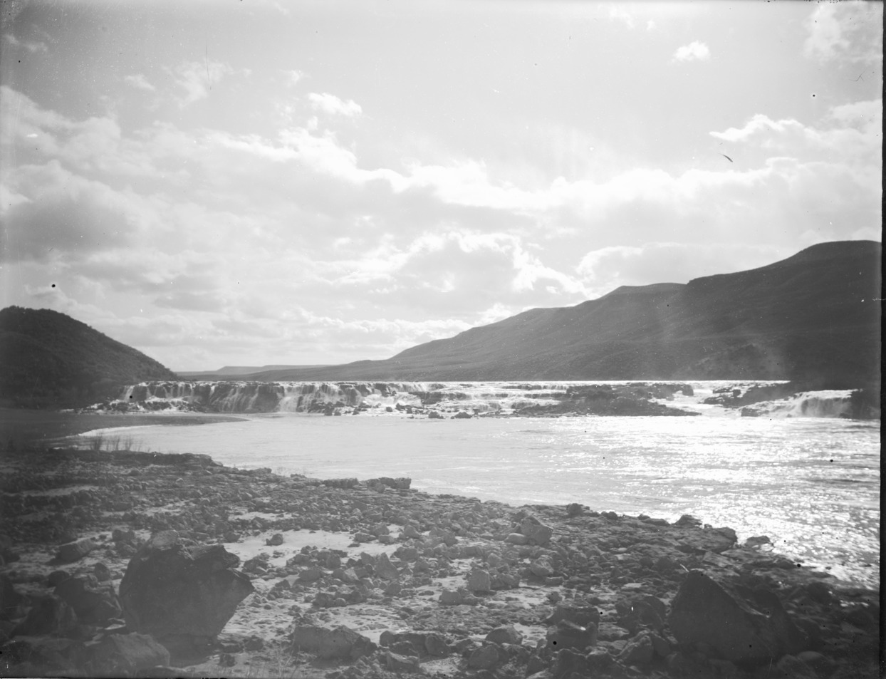 - Water flowing at Lower Salmon Falls at the base of foothills.