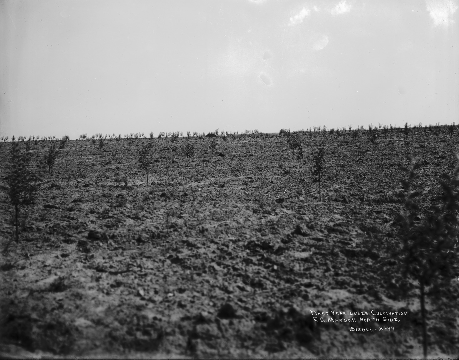 "First Year Under Cultivation; E.C. Manson, North Side;" a field of newly planted trees