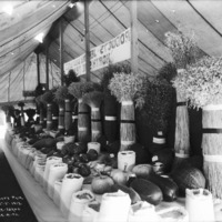 "Tri-County Fair; October 1,2,3, 1913; Jerome, Idaho;" produce display in a large tent