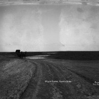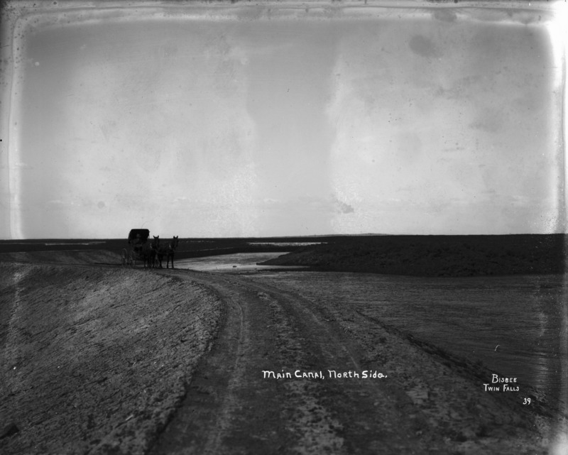 "Main Canal, North Side;" two horses and buggy stand on the berm along the canal
