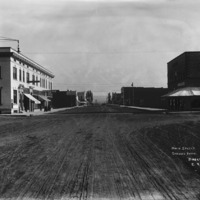 - "Main Street, Gooding, Idaho;" view down an intersection with several buildings. Businesses visible include: a bank; hardware store; dry goods; The Toggery, Gent's Furnishings, Clothing, Shoes; Light and Power; a hotel; and the U.S. Post Office.