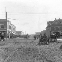- A muddy downtown street in Buhl, Idaho. Visible businesses and signs include Citizens State Bank; General Store; O. Clark Stone, Lawyer; The Golden Rule; Hardware; Contractors and Builders; Harness Shop; Peck's Grocery; Buhl Hotel is center right