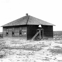 - "Hollister's First School House and Church;" a one-story wooden frame building. A bell on a platform is at the rear, with a ladder leading to the top. A smaller outbuilding is on left.