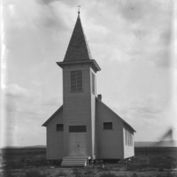 - "Amsterdam Church; three months from Sage Brush;" plain wood church with tall steeple.