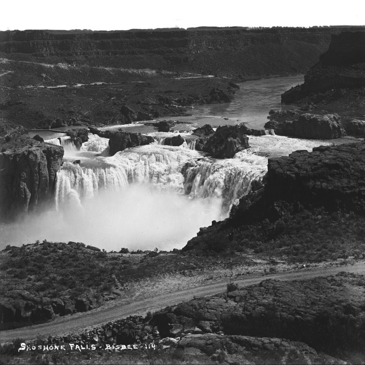 - "Shoshone Falls;" wide view of the Falls at high flow; from above the falls on the canyon.