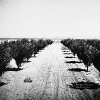 - "An Ideal Orchard. Jas {James} Fitzgerald;" rows of trees in an orchard with a building in view.