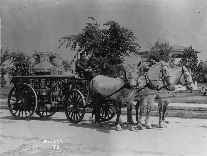 - Twin Falls Fire Department water pump wagon being drawn by horses; City Park and gazebo (band stand) gazebo in background