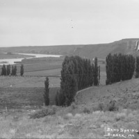 - "Sand Springs;" view of waterfall and fields in the Hagerman Valley.
