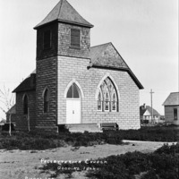 - "Presbyterian Church, Gooding, Idaho;" masonry church; other houses or outbuildings in background.