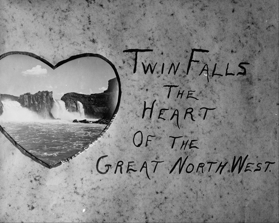 - "Twin Falls - The Heart of the Great NorthWest;" photo of the Twin Falls waterfall in the center of a heart.
