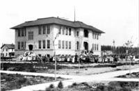 GB 013 "Gooding;" school building with students posing in front.