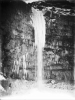 1929 A partially frozen waterfall over the canyon rim, below the Perrine Coulee.
