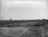 1922 Farmstead with fences, several outbuildings, and haystacks.