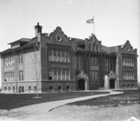 PC-2066 "Lincoln School;" with landscaping, soon after construction. {This building was demolished in 1975.}