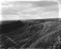 S 048 Wide view of a dry canal traversing the sage brush; a two-horse buggy stands in the dry canal bed in the center.
