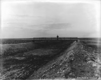 S 044 An man stands atop an irrigation coulee leading from a canal.