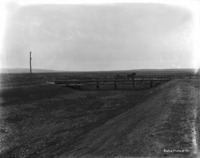 S 046 Wide view of canal system across sage brush plain, with gates in the foreground.