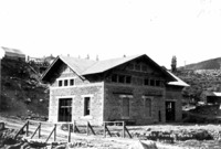 GB 004 "Malad Power Plant;" brick power station building on the Malad River, near Hagerman, Idaho. Several outbuildings and equipment are also visible.
