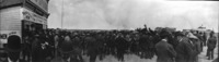 C 053 Panoramic view of a drawing for town lot, with a large crowd of in front of a land office building.