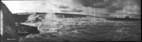 C 019 "Milner Dam;" panoramic view of the Milner Dam headgates and flow into river; Milner Inn in background at right.