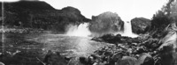 C 015 B View from below the Twin Falls in the Snake River Canyon; a cross has been erected on one of the rocks in the river.