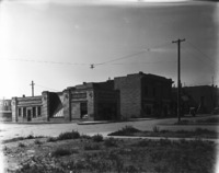 1704 Exterior view of the Bisbee Studio with addition, looking south at the corner of 2nd Ave East and 2nd St East (now Hansen St E.). Sign for Tourist Hotel on alley entrance of building in background.